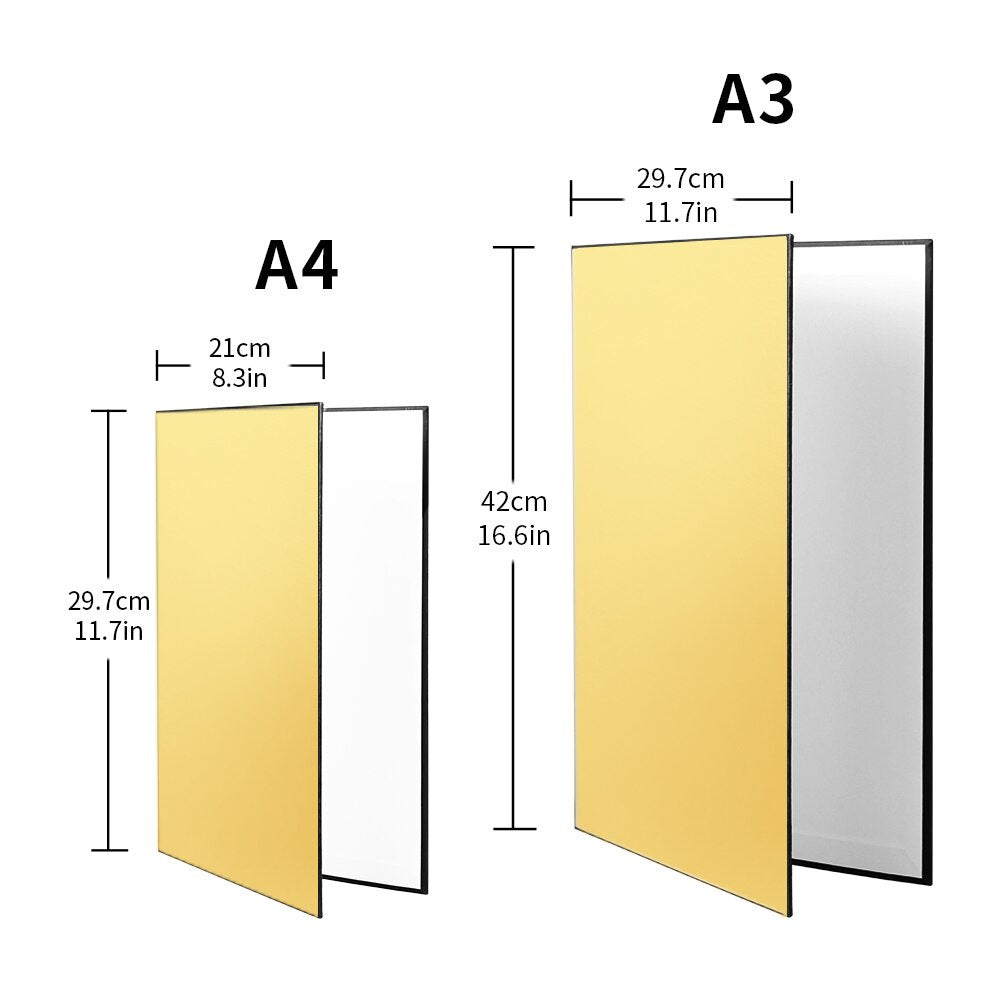 Foldable Standing Cardboard Reflector for Photography A4 (21*29cm) Gold and White (BZYA04)