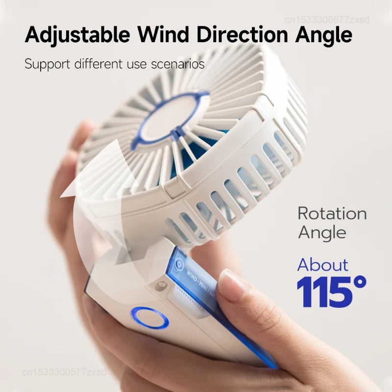 ● 【Foldable Design】This fan can be folded within 115°, extending to be a handheld fan or collapsing for easy storage and carrying around. Standing on surfaces, sitting on desktops, or holding in hands. A perfect personal fan to cool you down in the hot summer