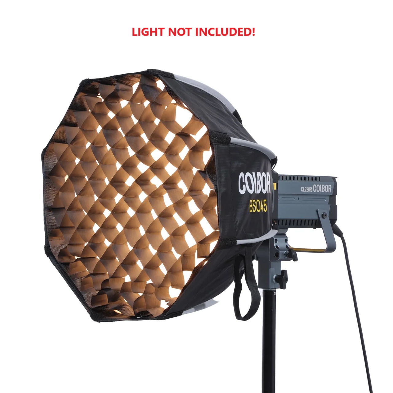Featuring an eight-sided, octagonal design, the COLBOR BSO45 45cm octa softbox helps create a natural, soft, and diffused light, making it a widely-used type in photography and videography. This shape is particularly effective for mimicking the qualities of natural sunlight and for providing pleasing catchlights in the eyes of portrait subjects. Compatible with Bowens mount lighting systems, they can be easily attached to a variety of lights. This makes them a go-to choice for both studio setups and location shoots.