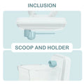 Comes with a small scoop (often around 5 g capacity) stored via a hanger or slot on the lid for convenient portioning.