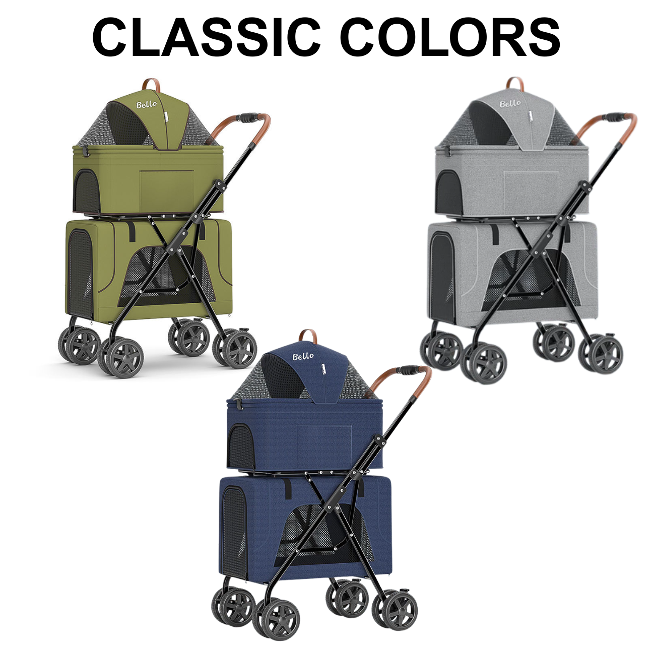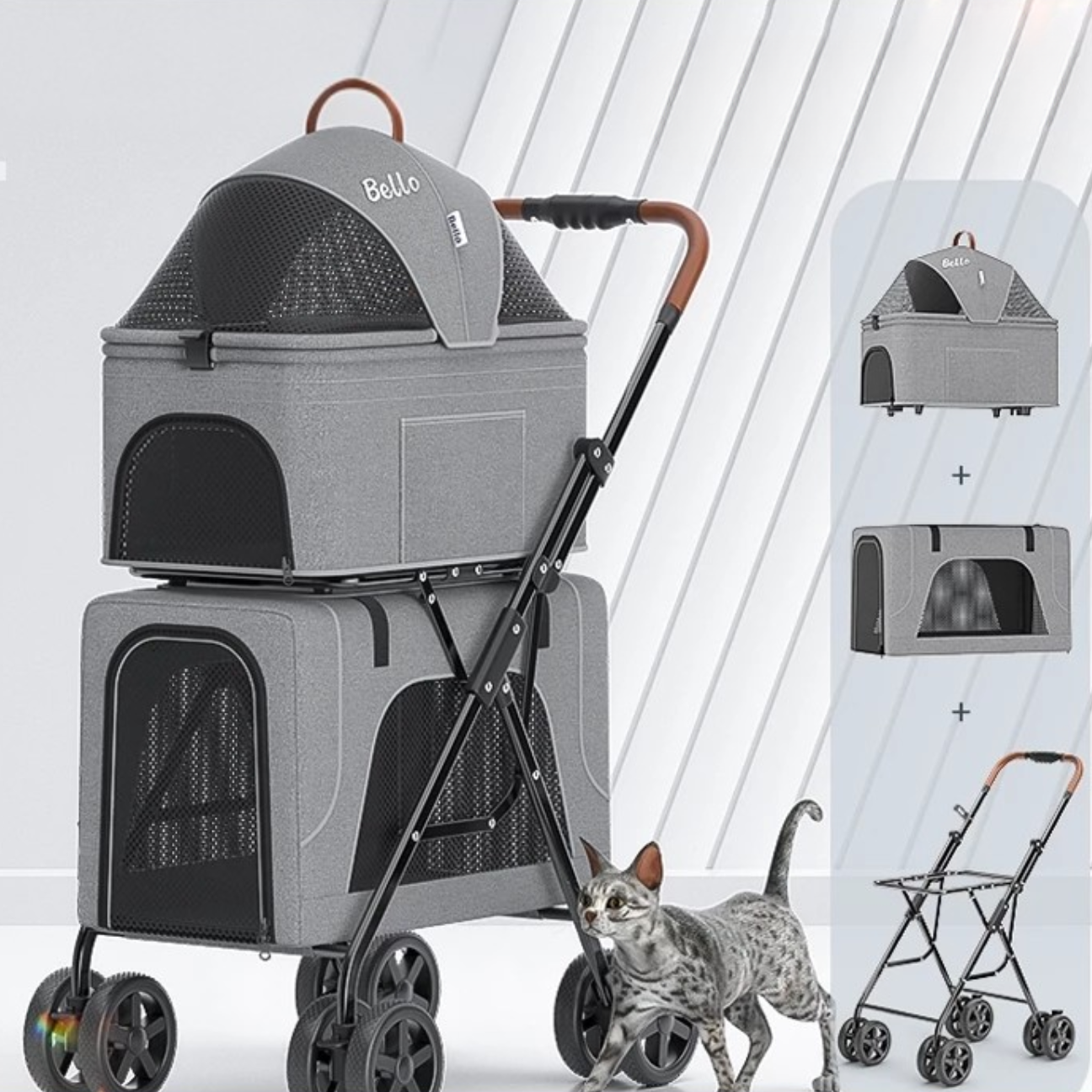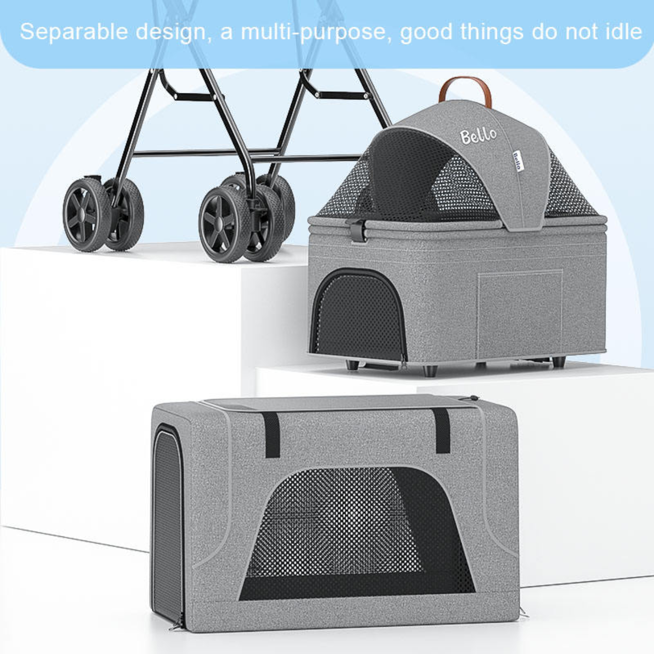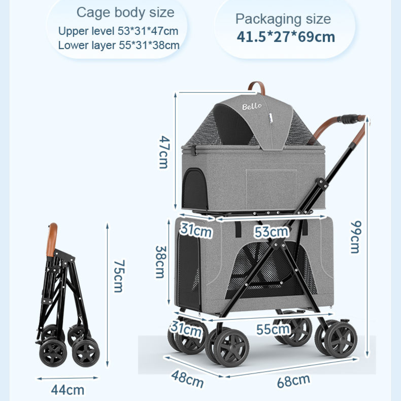 BELLO LD03F Double Pet Stroller Lightweight Foldable Portable Detachable Separable Pet Cart Trolley