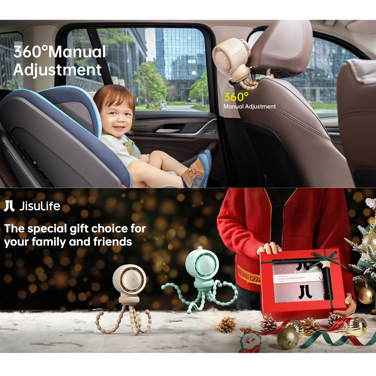 JISULIFE Stroller Fan Life2 Rechargeable Electric Clip Bladeless Turbo Octopus Baby Fan 100 Speeds Strong Wind With Air Purification And Outdoor Indoor Light For Car Crib Camping Emergency Office Desk Table Fan VMI Direct
