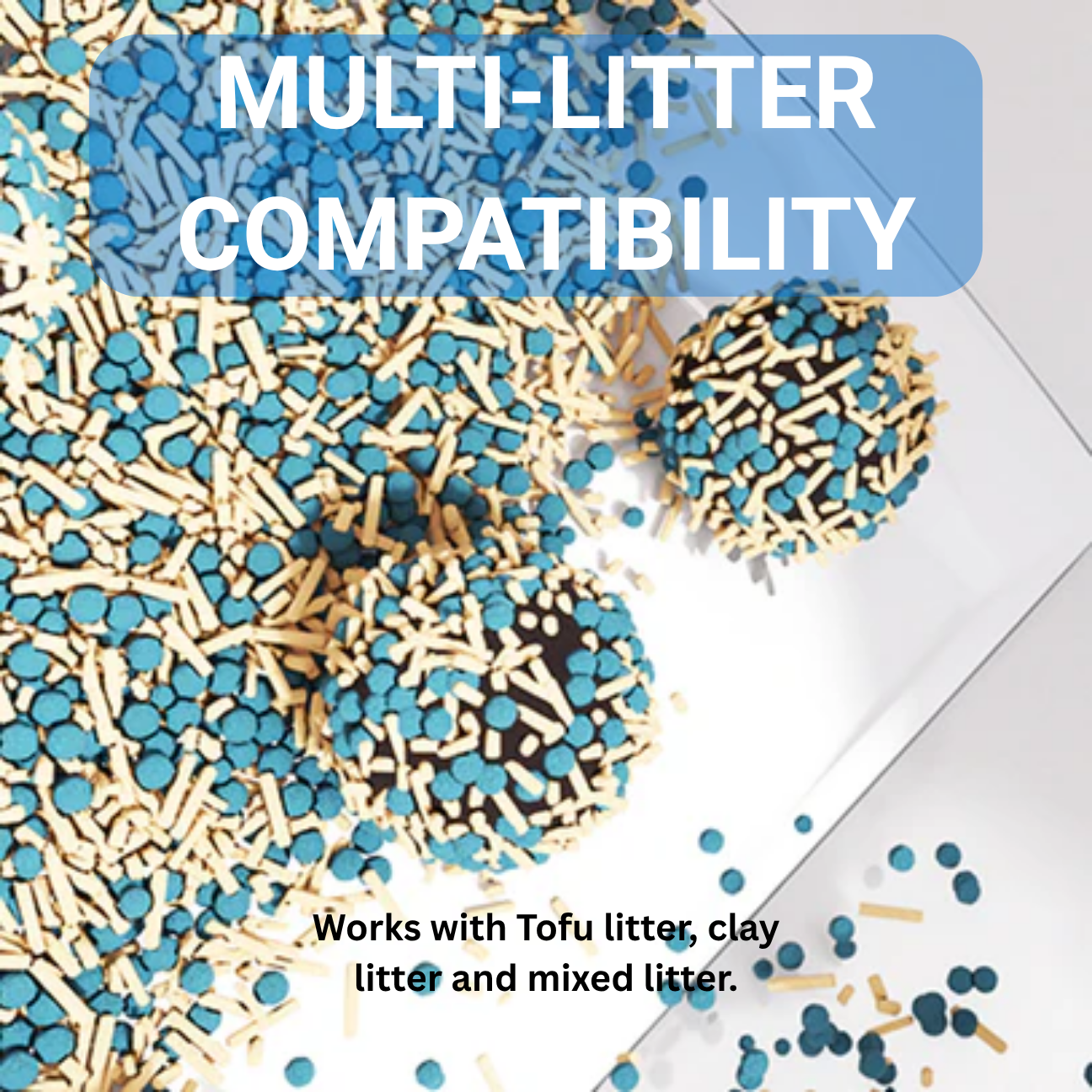 Universal Litter Compatibility → Works with all clumping litters → No proprietary products required