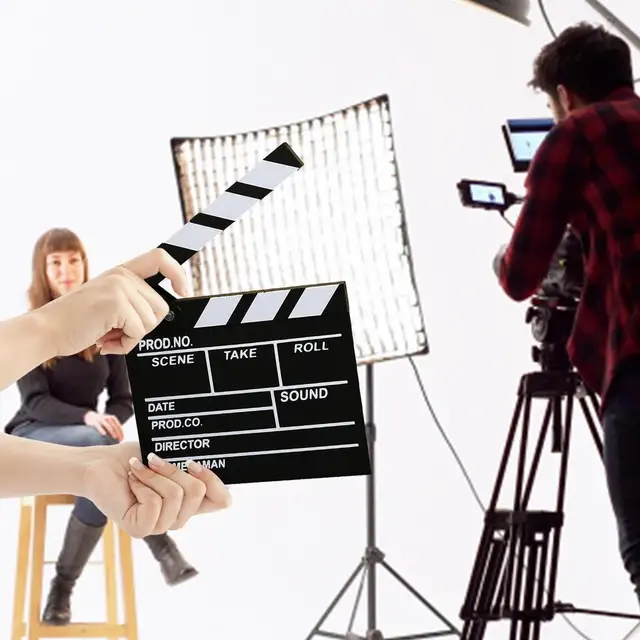 Movie Film Clap Boards Wooden Film Video Director Clapboard Movie Cut Action Scene Slate board Clapper Board Black White