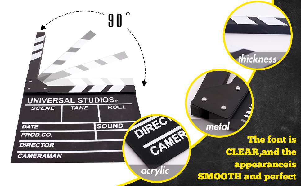 Description: Clap-strip, special design and powerful enough to avoid crack, convenient to use. Professional and resonant while being clapped. Lightweight design for convenient handle. Perfect For Children's Birthday Parties, Special Events, School, Corporate Events, Awards Programs, Fairs, Festivals, etc. This Clapper Board can be used for marking scenes in professional movie photo photography productions and room decoration or shooting props. With the features of the most traditional wooden surface for the use of chalks,users can write with chalks on the top and wipe the words off with a wet cloth. Specifications: Material: wood. Color: white, black, colorful. Size: S: 20*20cm, L: 30*27cm. Notes: Due to the light and screen setting difference, the item's color may be slightly different from the pictures. Please allow slight dimension difference due to different manual measurement.