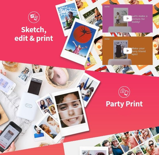 - Connect with up to five friends to create a unique instax print! Turn on Surprise Mode to keep the final image a secret until it develops.