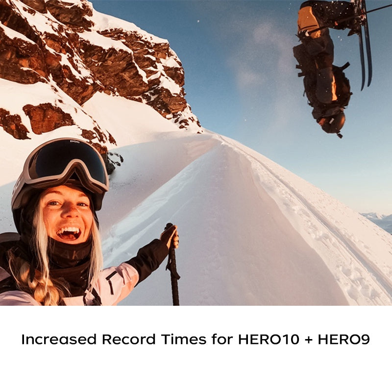 - Increases recording time in both HERO10 Black and HERO9 Black with up to 40% improvement in HERO10 Black using high-performance settings.