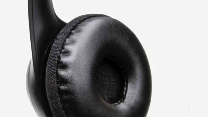 Adjustable headband features swivel-mounted, leatherette ear cushions for hours of comfort. Easy to clean, too.