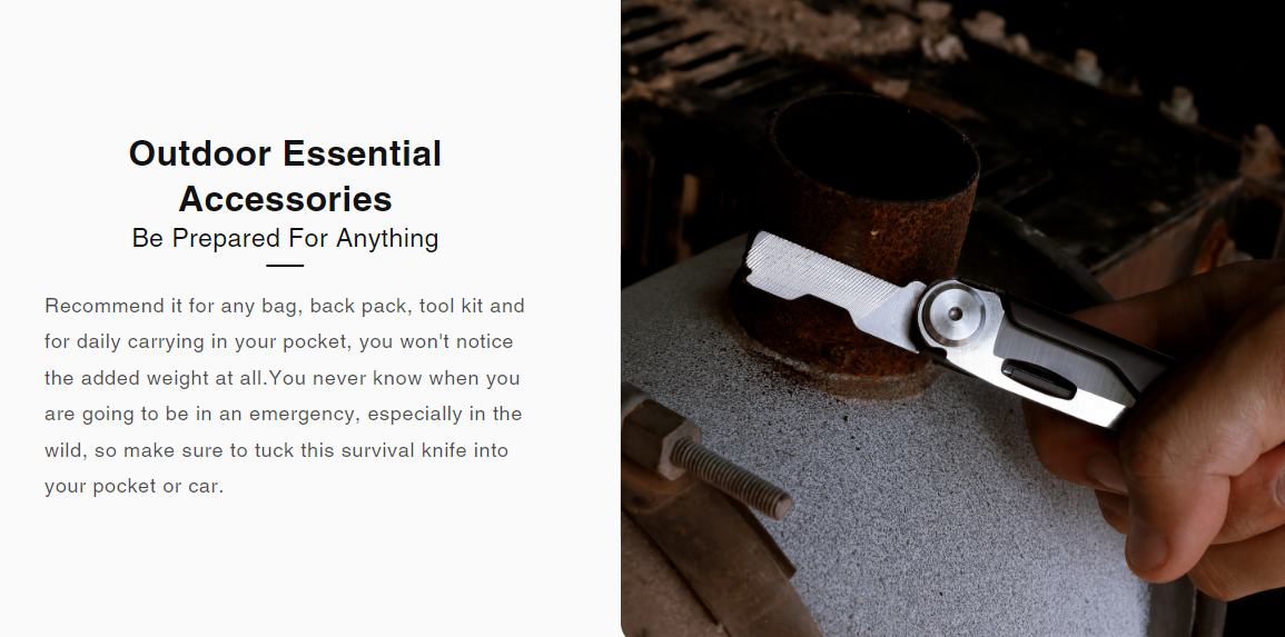 Recommend it for any bag, back pack, tool kit and for daily carrying in your pocket, you won't notice the added weight at all.You never know when you are going to be in an emergency, especially in the wild, so make sure to tuck this survival knife into your pocket or car.