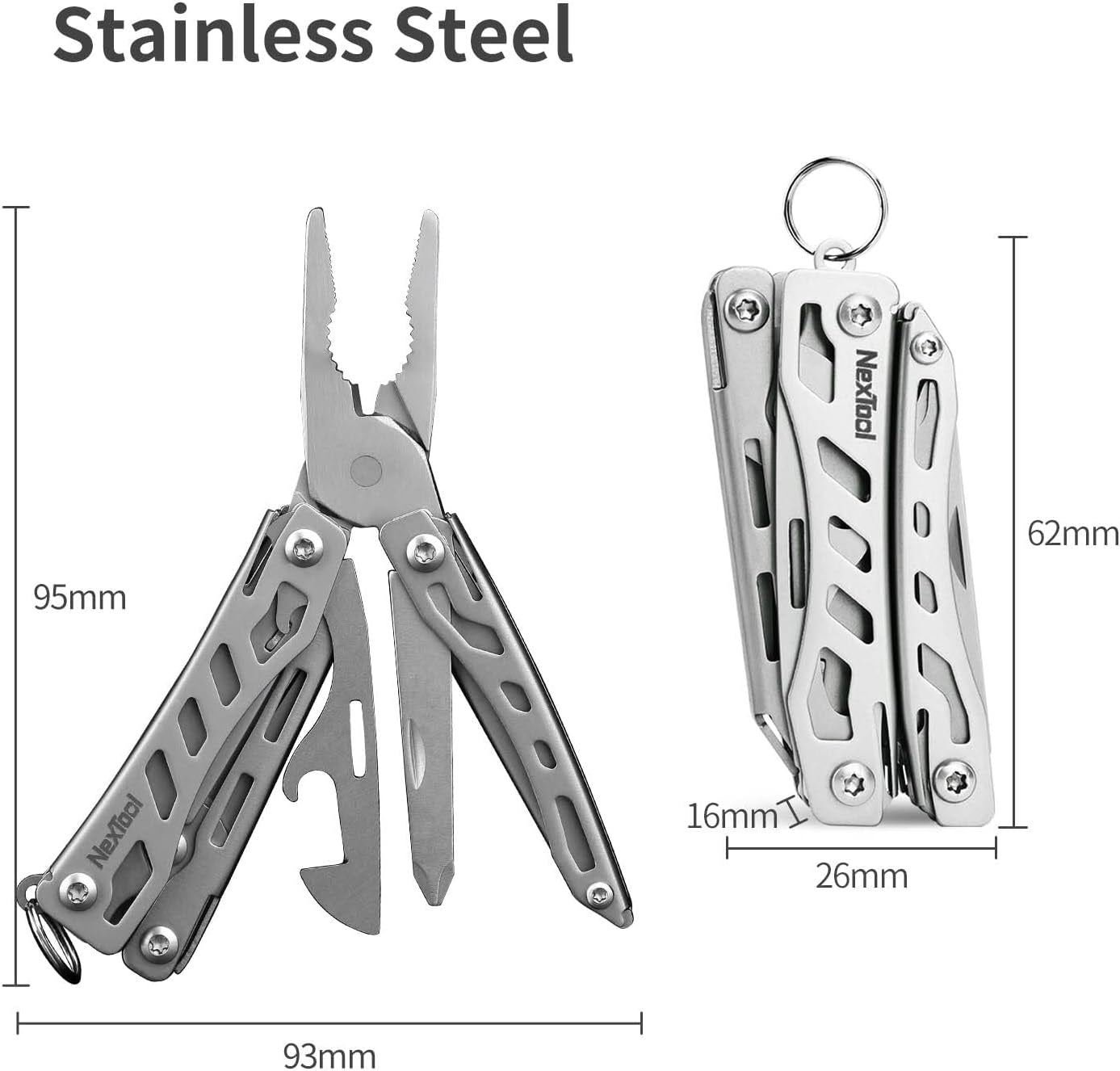 - DURABLE: This pocket multitool is constructed of 30Cr13 Stainless Steel which effectively prevents corrosion and guarantees long-term durability. The hardness of principal function parts are higher than HRC50, with a strong cutting force and sharpness of durability, wear resistance.