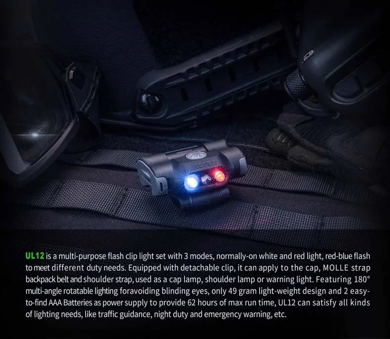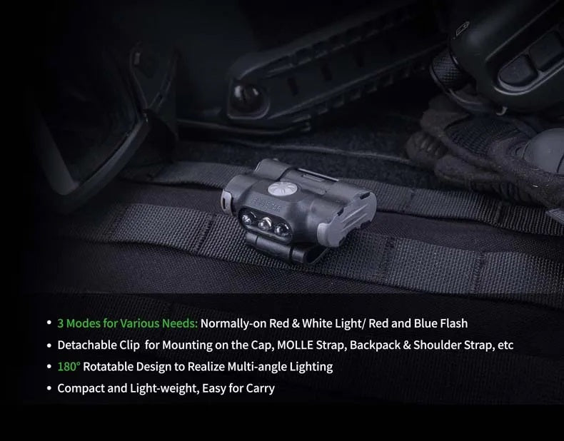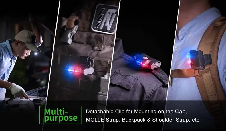Nextorch UL12 Tri LED Sources Clip Light Signal Light Flashlight Waterproof White Blue Red Lights Clip Fits for Strap Backpack Cap use for Police Night Patrolling Emergency Warning Search Security Traffic Navy Military Light Group Identification VMI