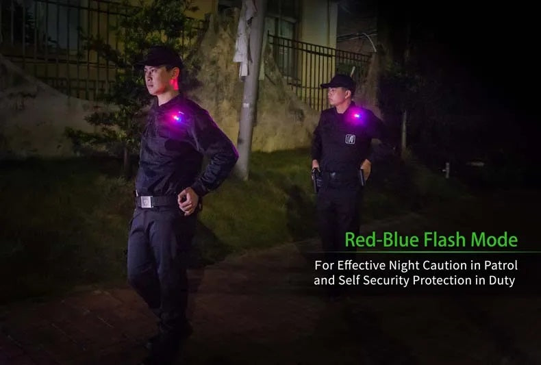 • Max 62 hours runtime in red-blue flash mode for long runtime duty needs
