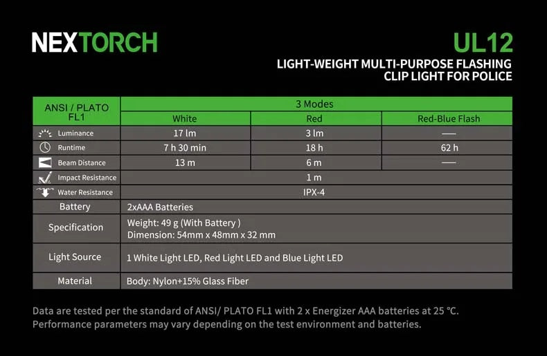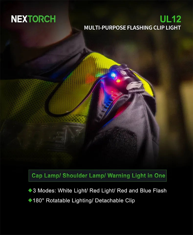Nextorch UL12 Tri-LED Sources Clip-Light Signal-Light Flashlight Security Police Light Clip Fit