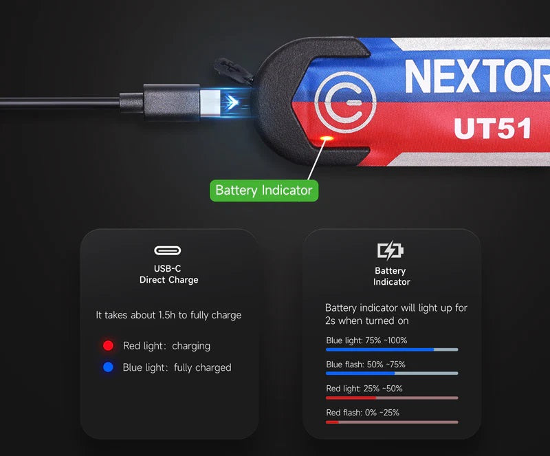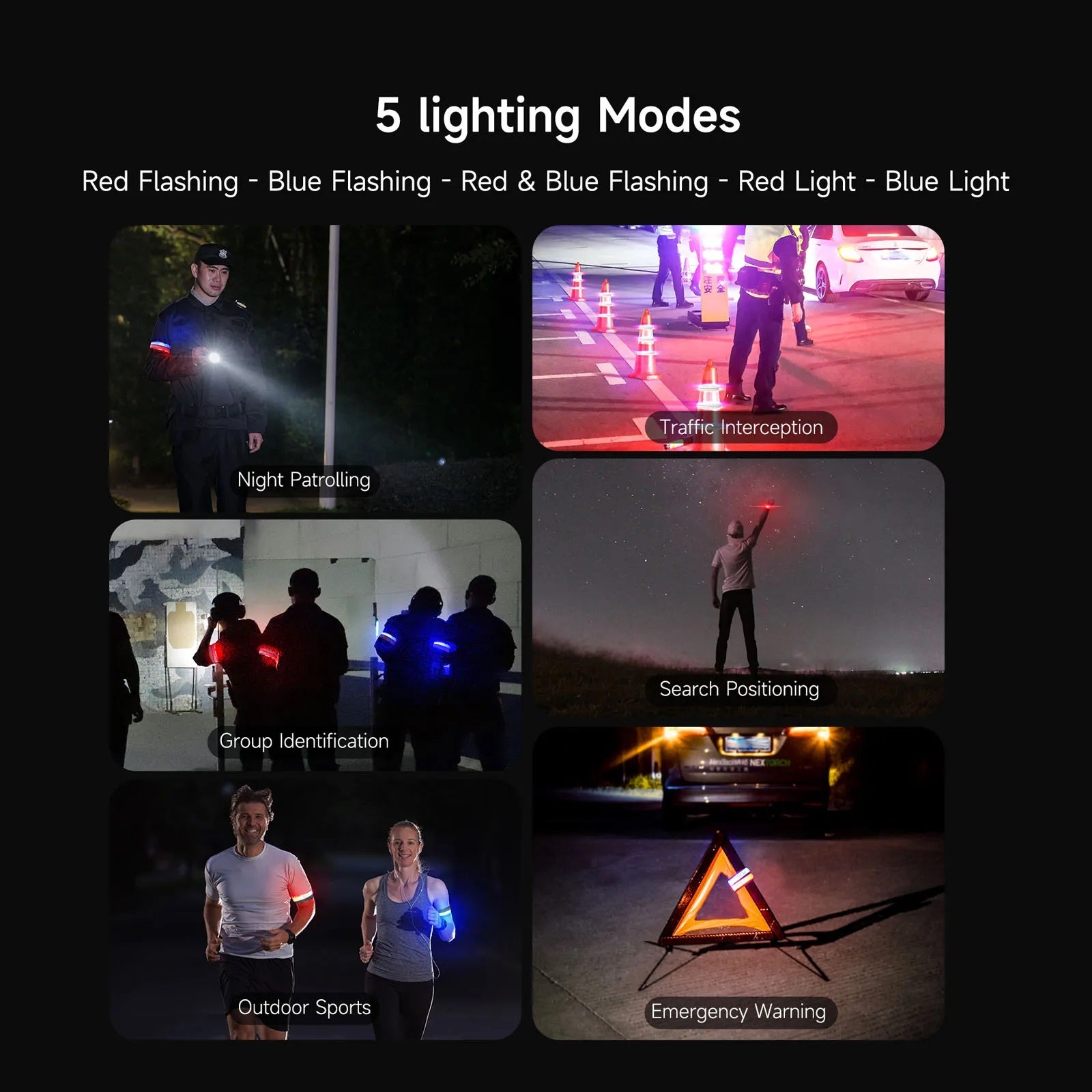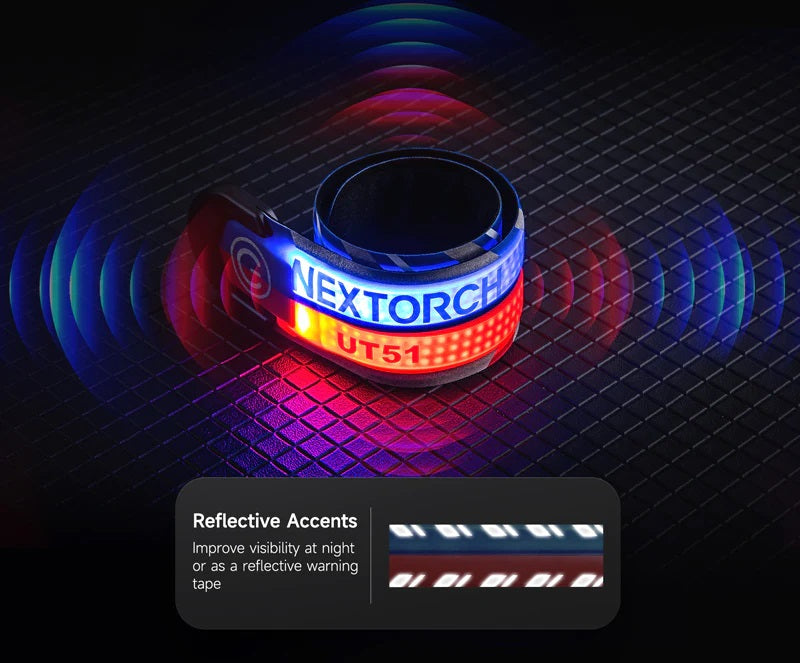 NEXTORCH UT51 Warning Flashlight Red-Blue Flashing Safety Slap Bracelet USB Rechargeable for Outdoor