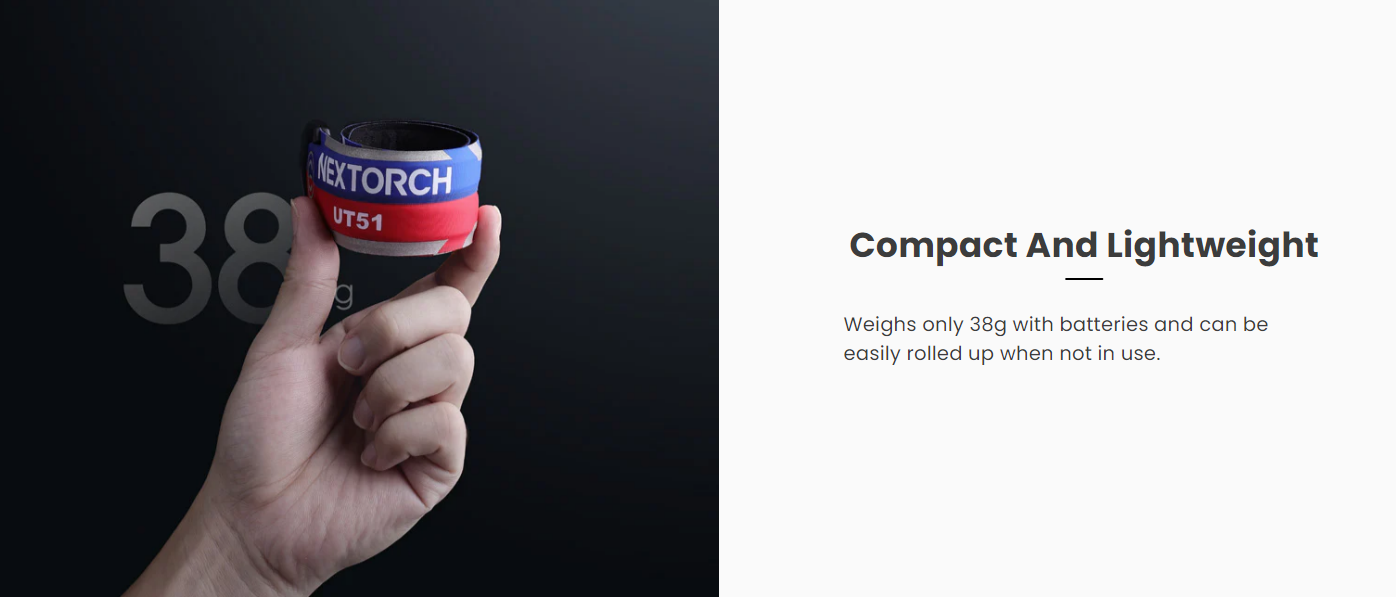 • Weighs only 38g with batteries and can be easily rolled up when not in use.
