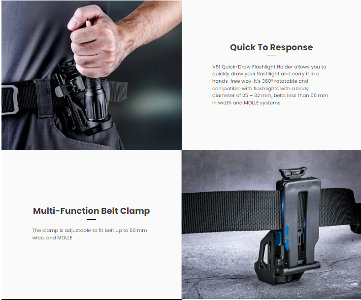 Nextorch V51 Tactical Flashlight Holster with Lever Side Lock System