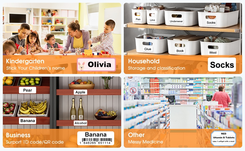 - 【Better Print Quality】Label Makers with BPA-Free Direct Thermal Technology. The NIIMBOT D11 Label Maker Machine is widely used in organizing home supplies - storage, food date marking, classifying cosmetics items, jar stickers; School name labels, study note and office files classification, cable identification, personal item identification, name tags; Small business - price tags, jewelry tags and more.