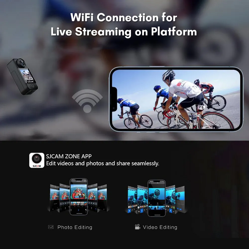 【More Powerful Features】1.33 inch large touch control screen; 154° large wide angle lens; edit videos and photos and share seamlessly on SJCAM ZONE APP; supports max. 60 seconds video prerecording and night vision recording; built-in 5G/2.4G dual WiFi modules for faster video transmission.