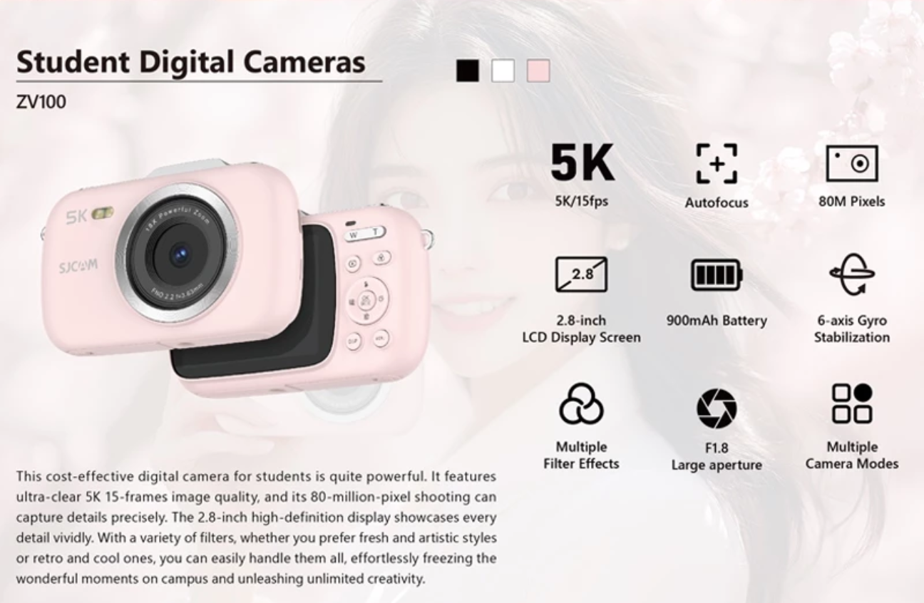 The ZV100 digital camera captures every special moment in great detail. It provides 5K video at a rate of 30 frames per second or 4K video at a speed of 60 frames per second.