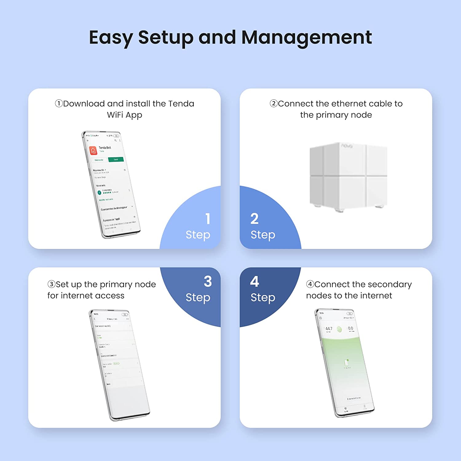Tenda Mesh WiFi System (MW6) Up to 4000 Sq.Ft. Coverage, 2 Gigabit Ports per unit, WiFi Router and Extender Replacement, Works with Alexa, Parental Controls, 2 packs
