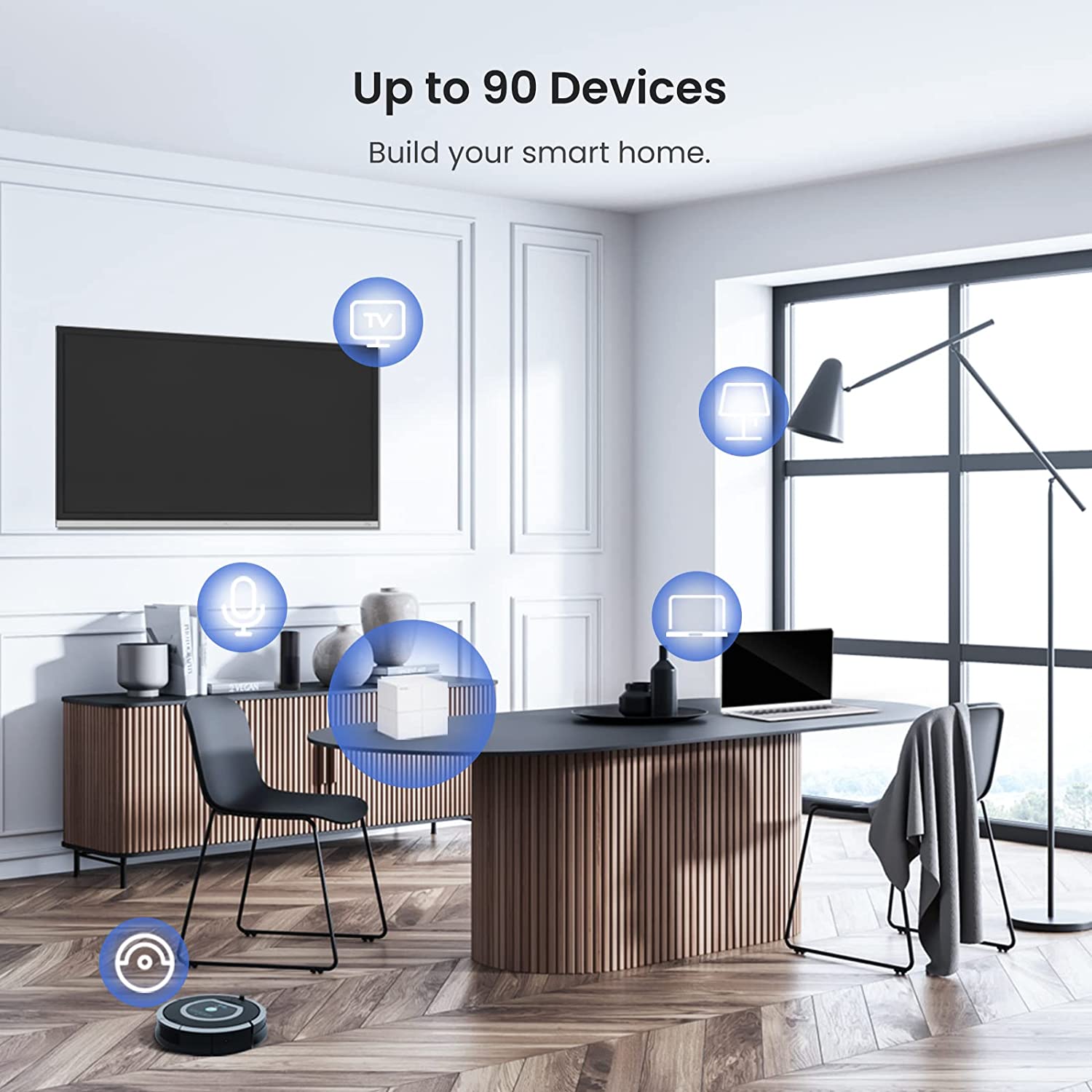 Talks to Alexa directly over the mesh network to use different apps and smart devices.