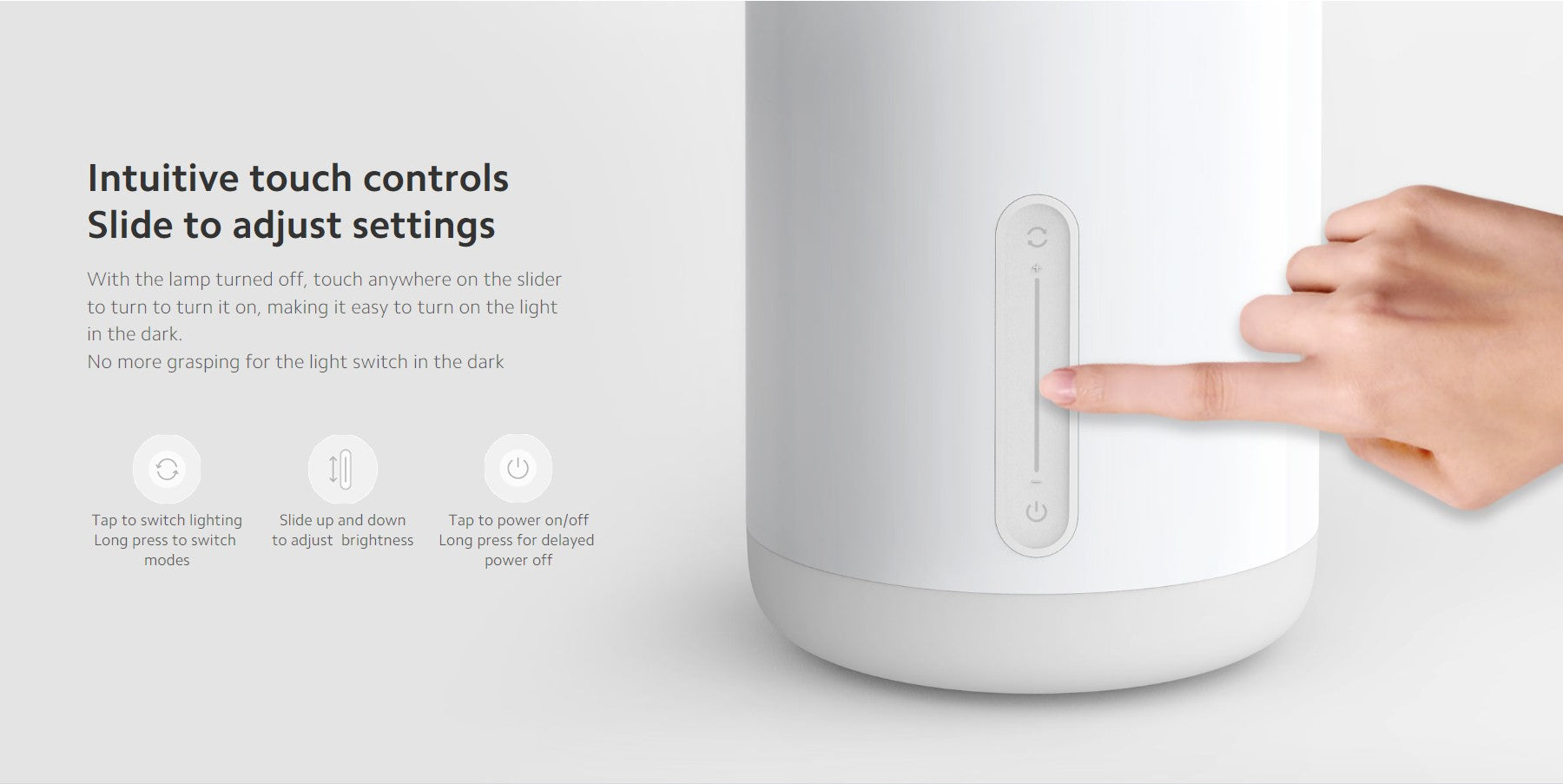 Simply touch to adjust brightness, change color, delay switch off or switch light mode as needed.
