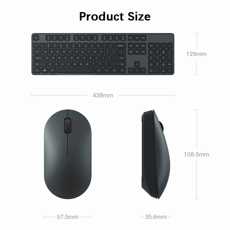 Size: 43.6*12.75*2.75cm (Keyboard ), 11.3*6.0*3.6cm (Mouse)
