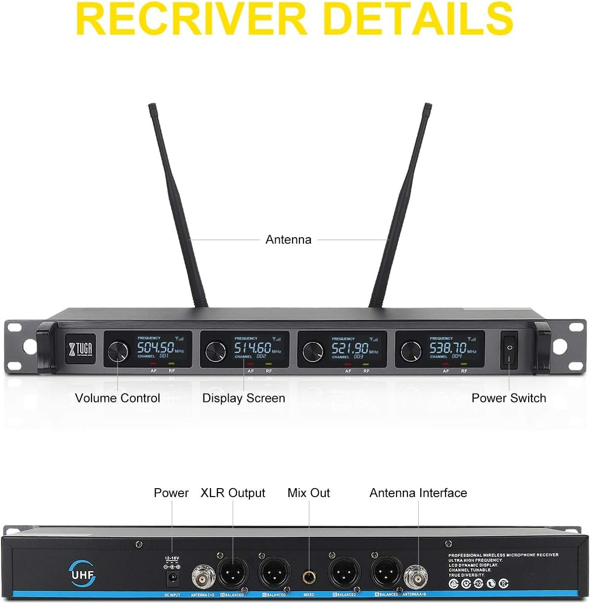 XTUGA A140 Professional Level UHF Microphone System with 4 Handheld Microphones