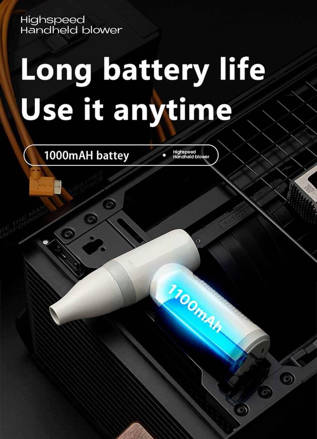 ● FAST CHARGING, LONG LASTING: Embrace eco-friendly, cost-effective cleaning with our reusable compressed air duster – the perfect canned air alternative. built-in 1100mAh large capacity battery, life can reach 2.2 hours, Quick-charge in just 2-2.5 hours, making it an eco-conscious choice for a powerful, reusable solution