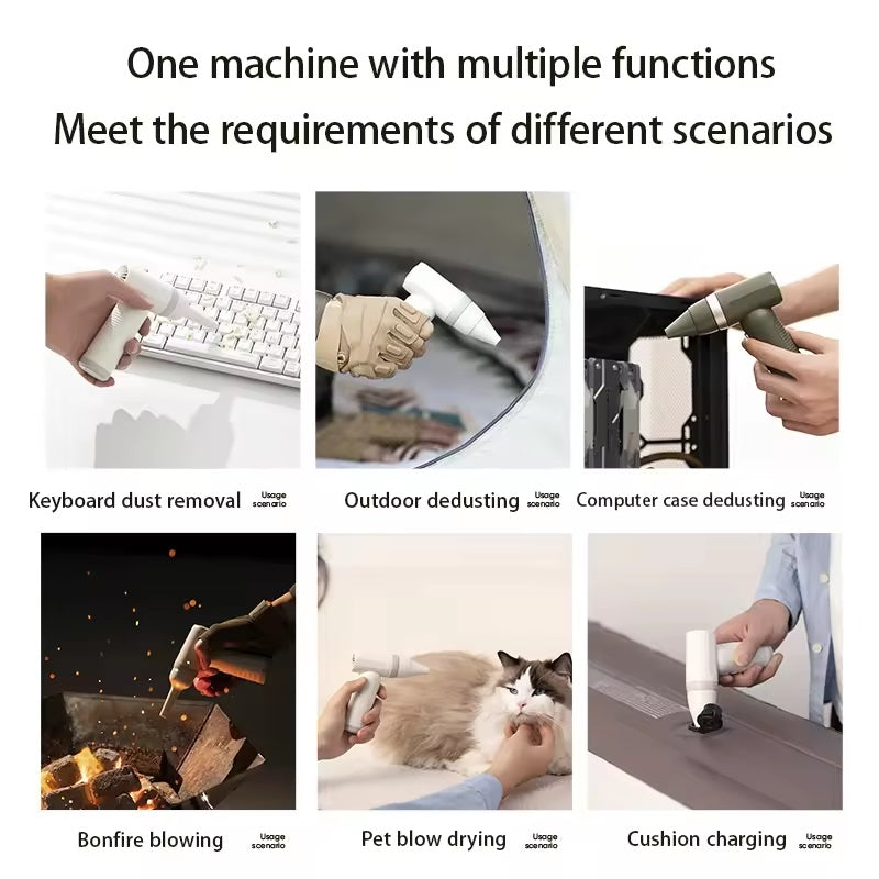 ● WIDELY USED & PERFECT GIFTS: Excellent keyboard cleaner, sofas compressed air duster, this powerful air blower isn't just a dust-buster, it also can be used as a handheld fan or hair dryer. Effortlessly blow away dust, clear car leaves and water residue, kindle your BBQ, inflate pool floats, and even make a thoughtful gift