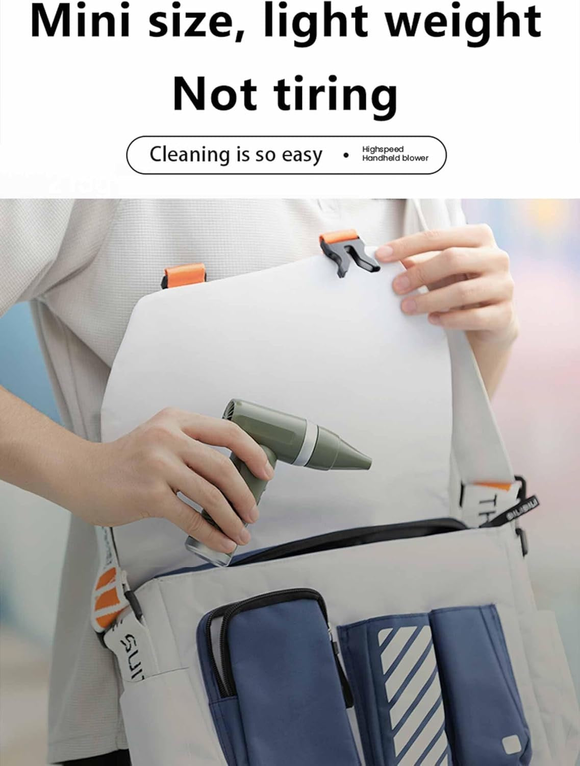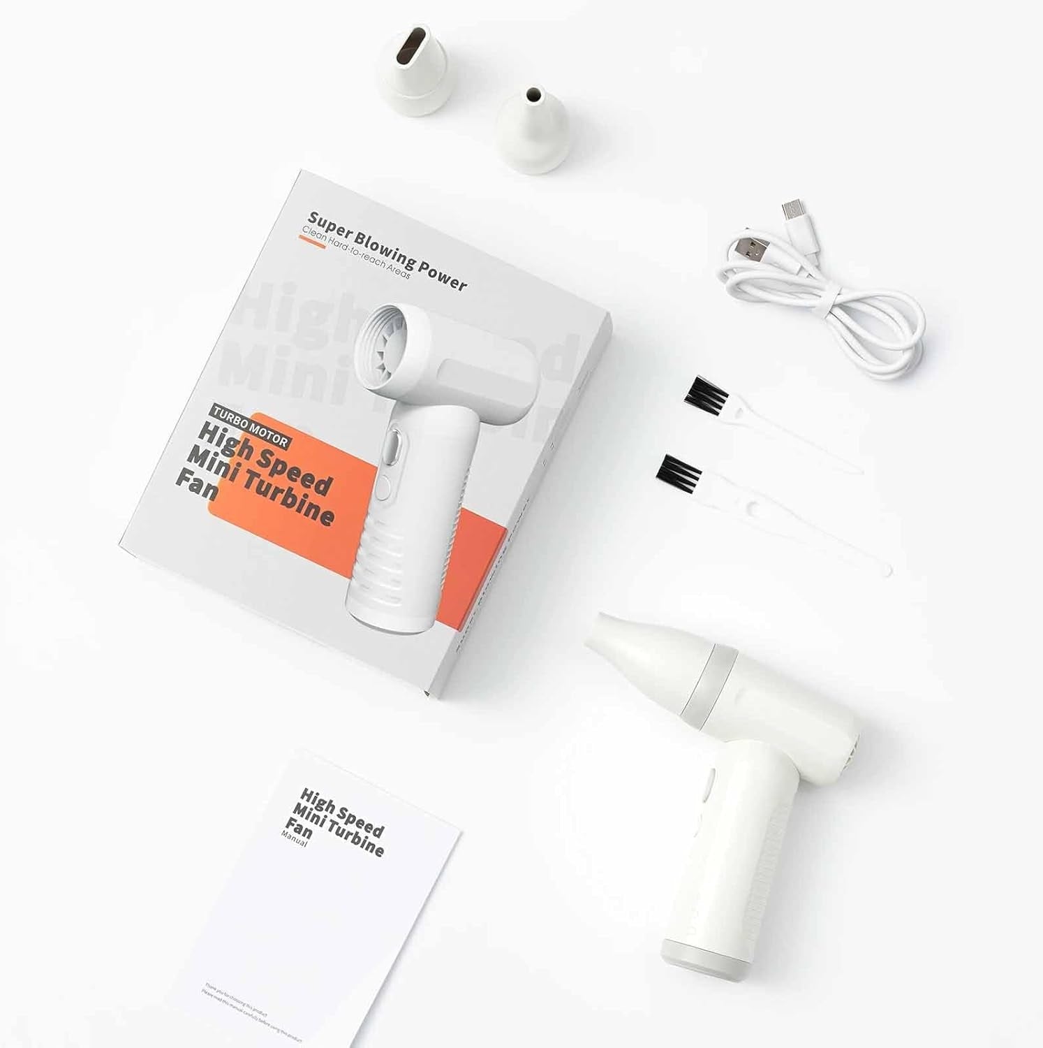 ● SMALL IN SIZE, BIG ON FUNCTION: Turbo fan blower Experience the perfect blend of compact convenience and robust airflow, Employing cutting-edge brushless motors and turbocharging tech, it outshines the competition by being 30% smaller, a mere 215g in weight, yet delivering unparalleled cleaning force for impeccable dust-busting results